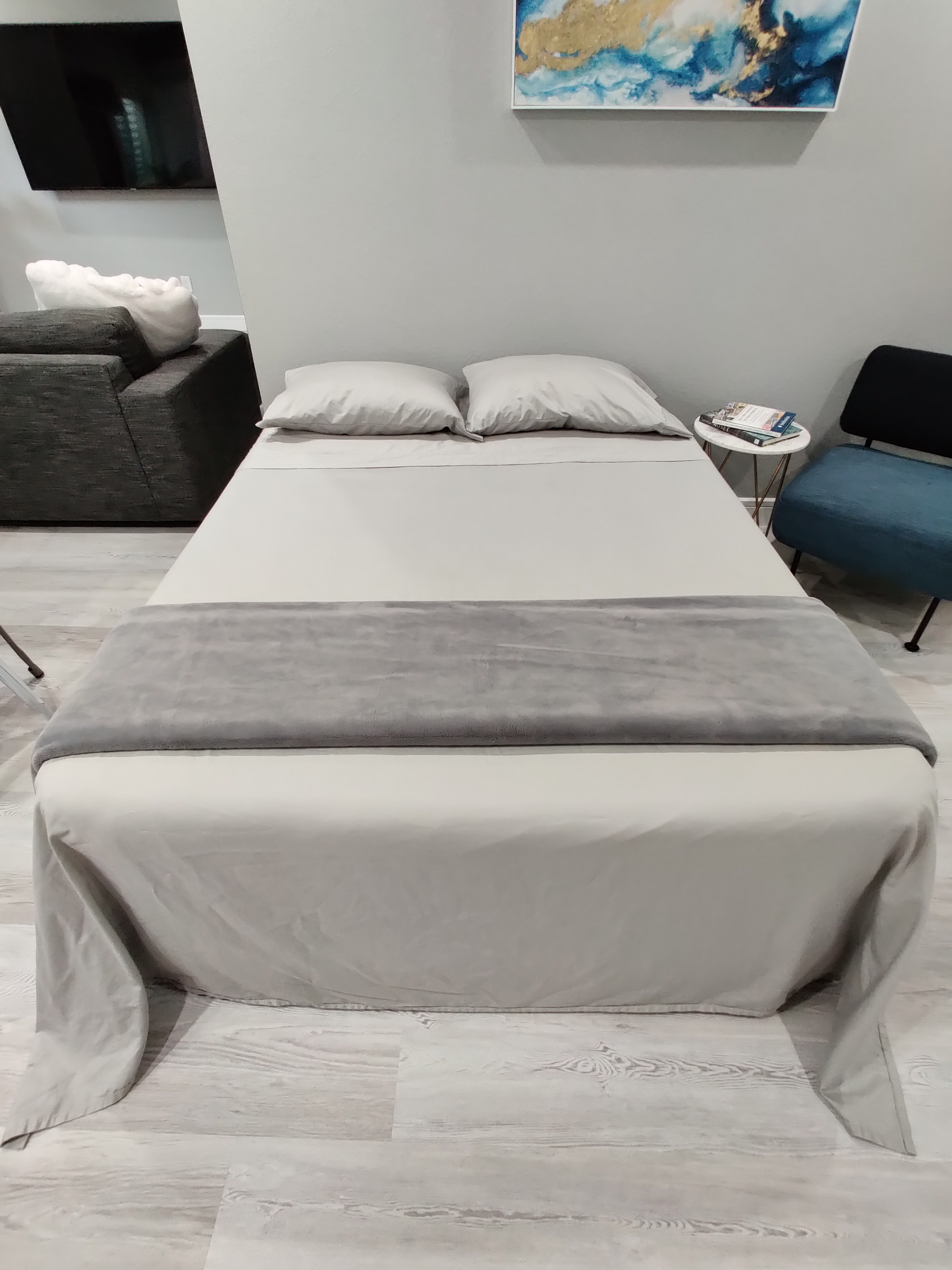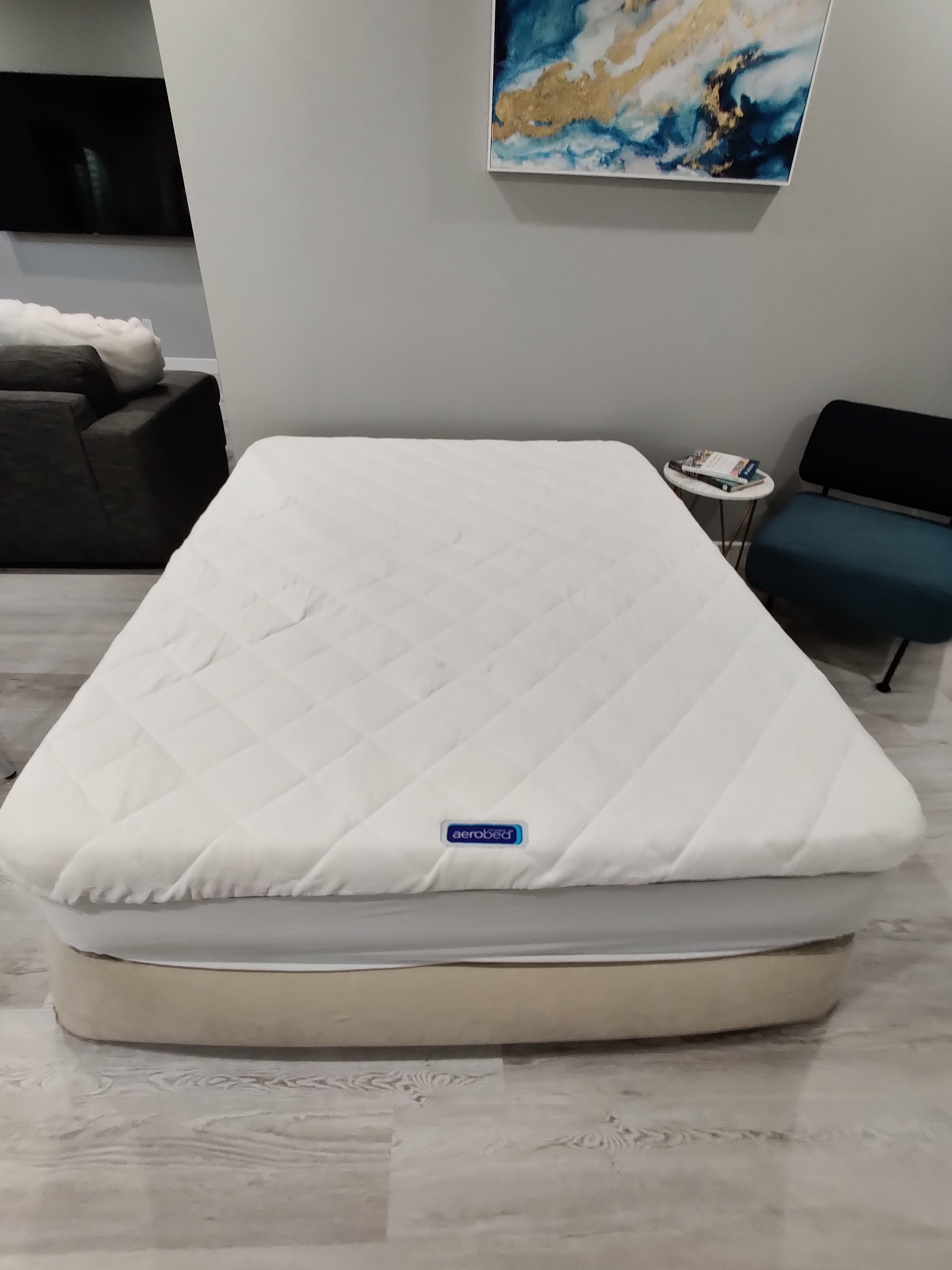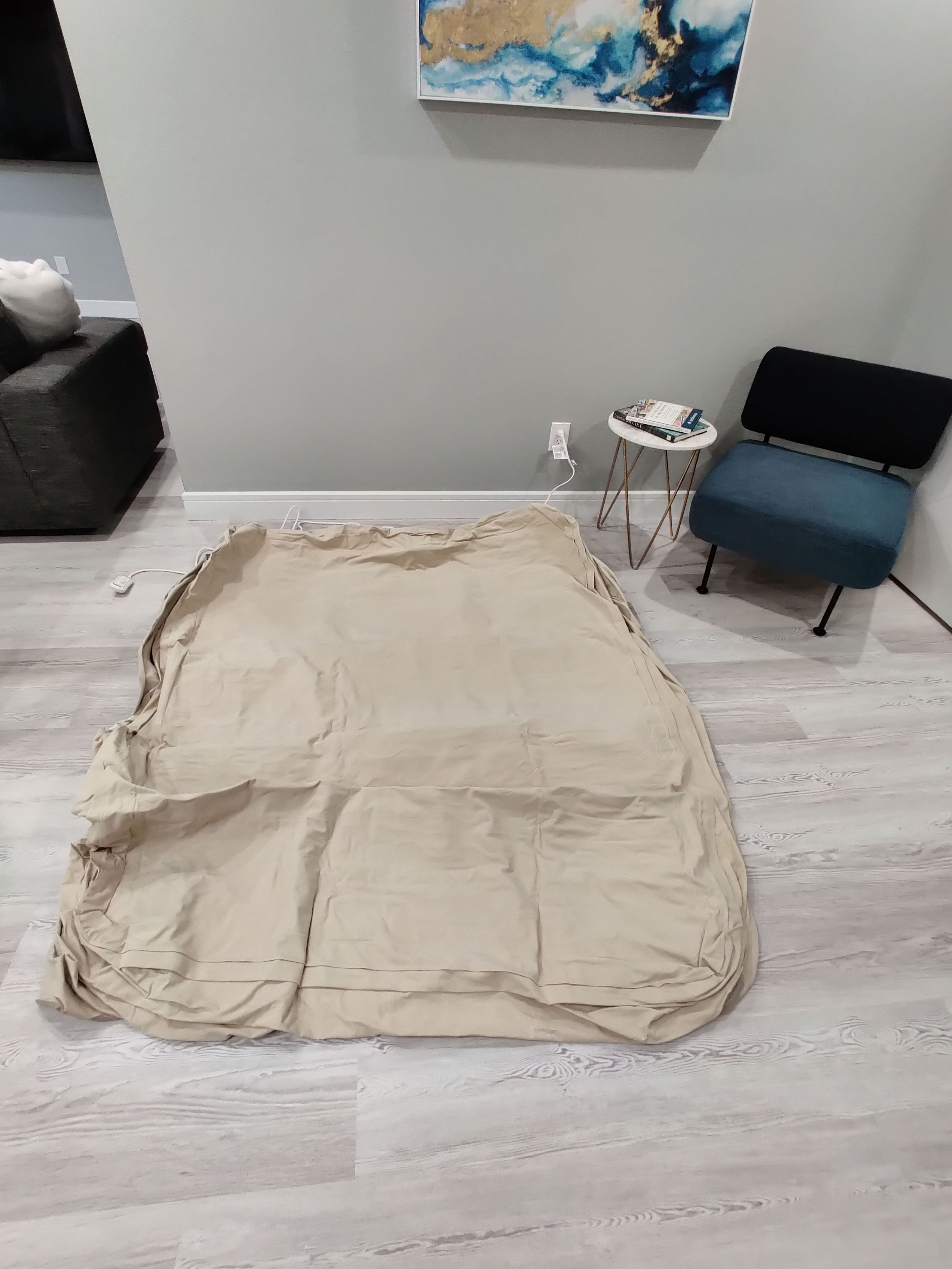 - Find the area you want and unroll the mattress (we recommend the space by the cozy blue chair)